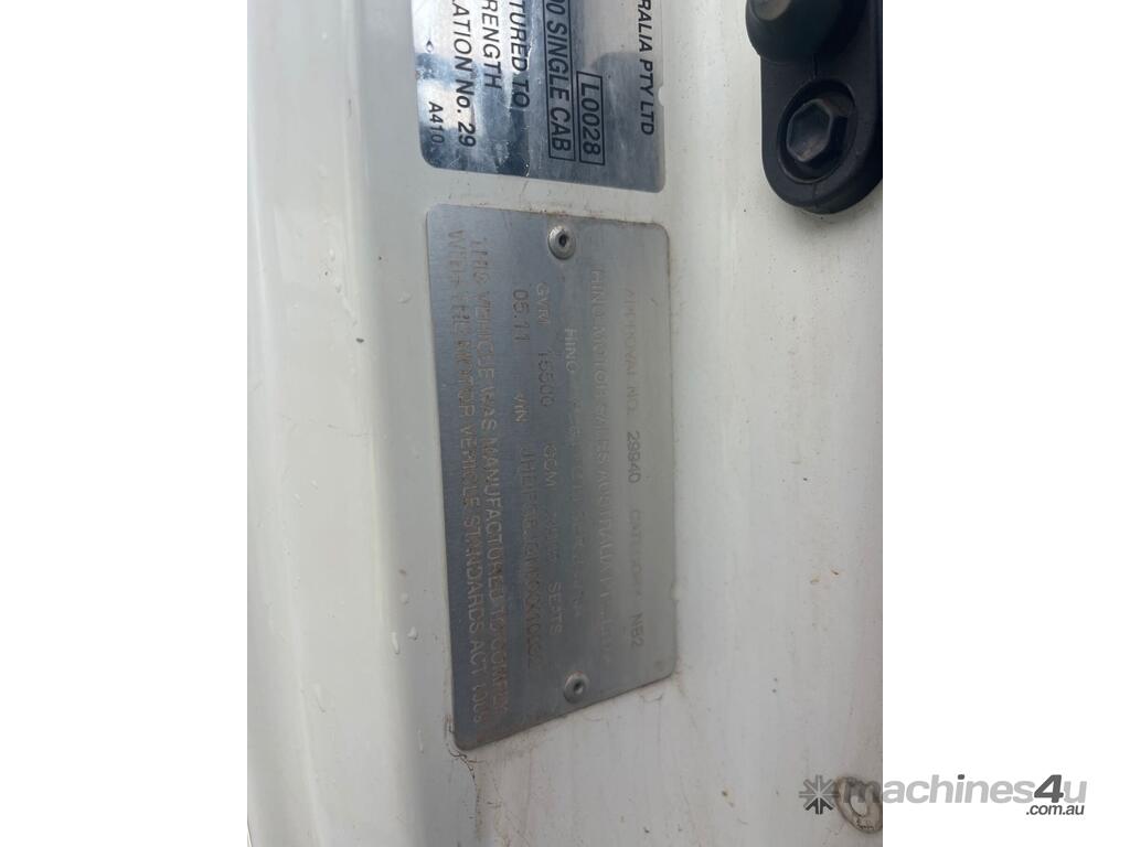CP: 05/2011,Hino,FG1J,Street Sweeper (Dual Control),Automatic,Spring,6 Cyl,Diesel Turbo,126411 (Kms. Showing on Odometer),Hourmeter not visible,Colour: White,Unregistered,VIN: JHDFG8JGMXXX10032,Length: 5.7 m,GVM: 15500,GCM: 24000,Sold with No Plates,WOVR Status: WOVR N/A,Incident Type: Not Applicable