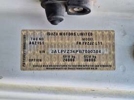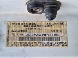 CP: 10/2011,Isuzu,FVZ 1400,Water Cart,Automatic,Spring Suspension ,Sitec 295,6 Cyl,Diesel,Turbo,97008 (Kms. Showing on Odometer),Hourmeter not visible,Colour: White,Rego. No: NP(SB45FD), Unregistered SA,VIN: JALFVZ34PB7000384,GVM: 24000,GCM: 36000,Sold with No Plates
