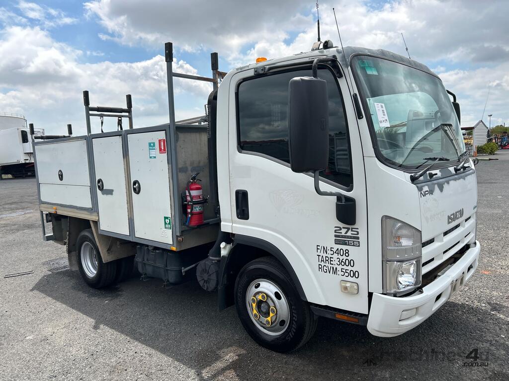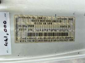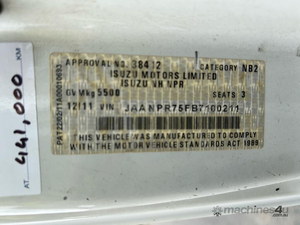 CP: 12/2011,Isuzu,NPR 275 SWB,Service Body,Manual,Spring,Sitec SIII,4 Cyl,Diesel,5 Gears,437081 (Kms. Showing on Odometer),Hourmeter not visible,Colour: White,Rego. No: 389MFH QLD,VIN: JAANPR75FB7100211,Key No: 299,GVM: 5500,GCM: 9000,Sold with No Plates,Key No: 299