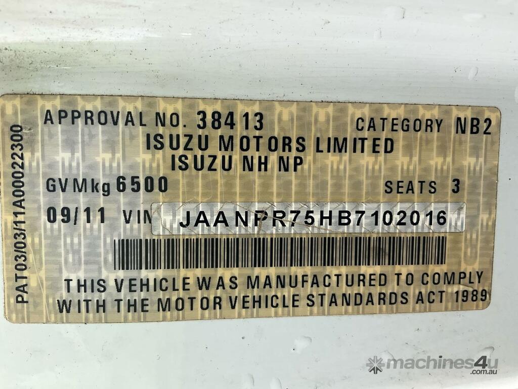 CP: 09/2011,Isuzu,NPR 300 MWB,Refrigerated Pantech (Day Cab),Manual,Spring ,Engine #: 4HK1321569,Sitec,4 Cyl,Diesel Turbo,6 Gears,273009 (Kms. Showing on Odometer),Hourmeter not visible,Colour: White,Unregistered,VIN: JAANPR75HB7102016,Key No: 401E,Length: 6.2 m,GVM: 6500,GCM: 10000,Sold with No Plates,Key No: 401E