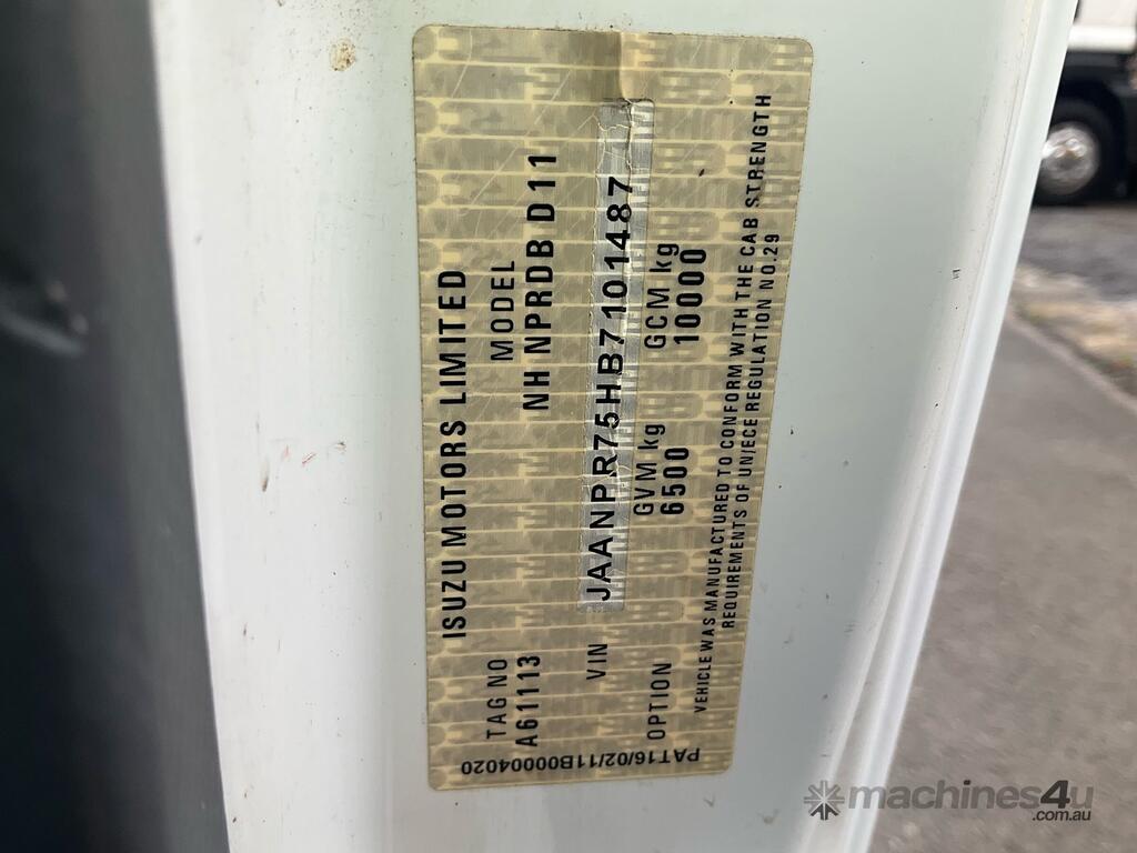 CP: 06/2011,Isuzu,NPR 300 MWB,Service Body,Automatic,Spring,Engine #: 4HK1908246,Sitec Series III 155 HP,4 Cyl,Diesel Turbo,70774 (Kms. Showing on Odometer),4107 (Hrs. Showing on Hour meter),Colour: White,Rego. No: NP(XP95BG), Unregistered NAT,VIN: JAANPR75HB7101487,Key No: 141,Length: 6.2 m,GVM: 6500,GCM: 10000,Sold with No Plates,Key No: 141