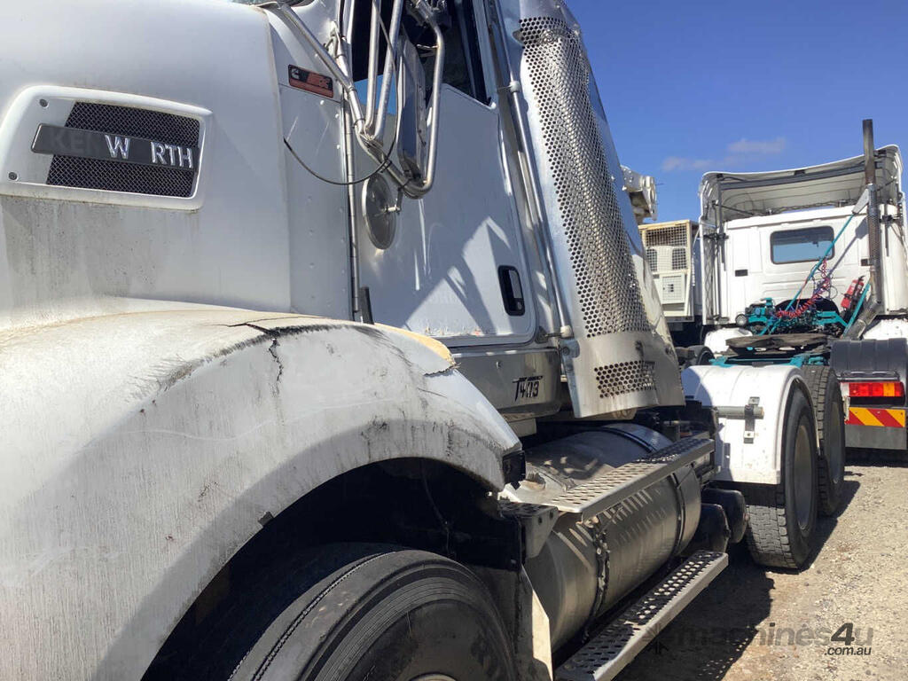 CP: 11/2011,Kenworth,T403,Prime Mover,Manual,Diesel,Odometer not visible,Hourmeter not visible,Colour: White,Rego. No: YSP985 VIC,VIN: 6F5000000BA445695,GVM: 24700,Sold with No Plates,WOVR Status: WOVR N/A,Incident Type: Impact