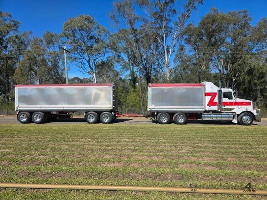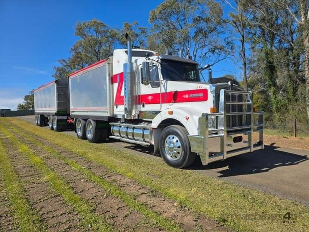 2011 Kenworth T409 SAR, 36-inch bunk, Cummins ISX (with rebuild history), 18sp manual, dual cross-locks, grain-spec bin, roll-over tarp, complete with matching 2012 Hercules Quad grain-spec trailer, PBS spec, very tidy spec, comes workshop checked, serviced, and complete with NSW RW for $179,000+GST