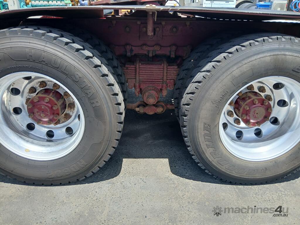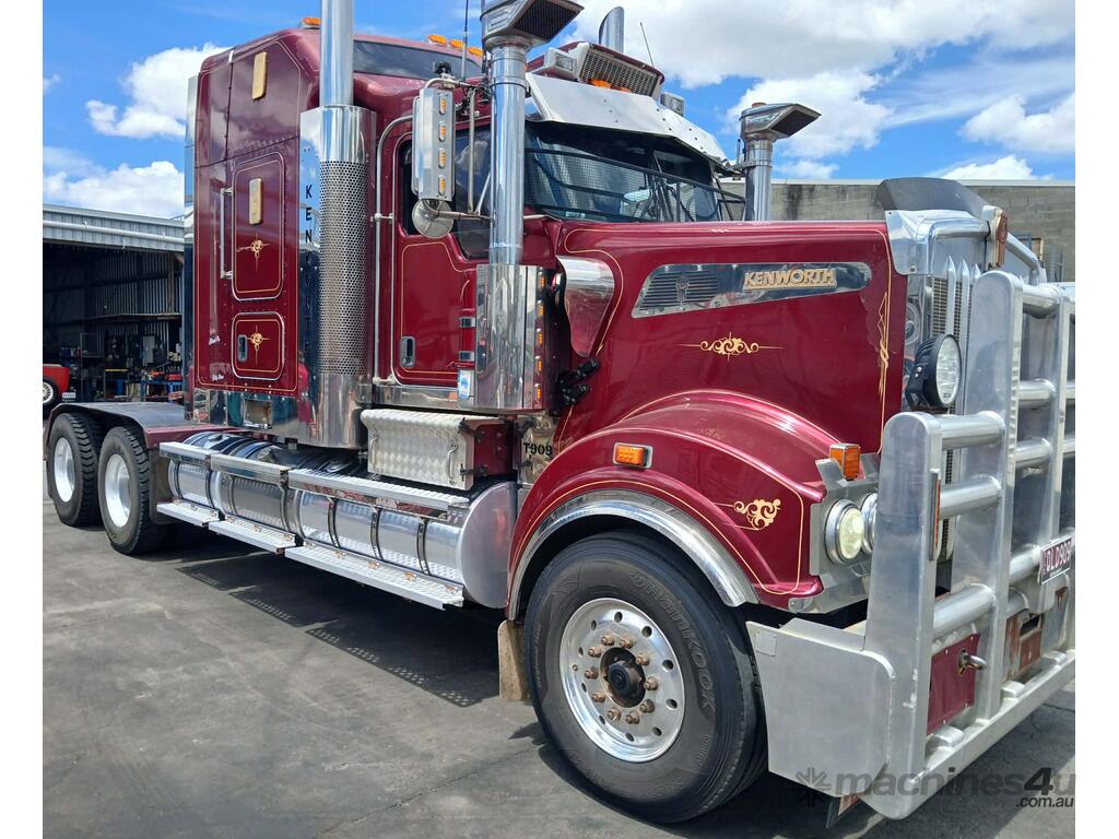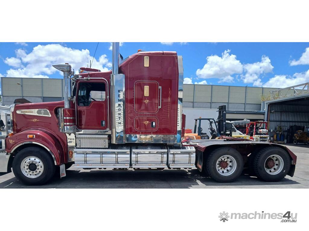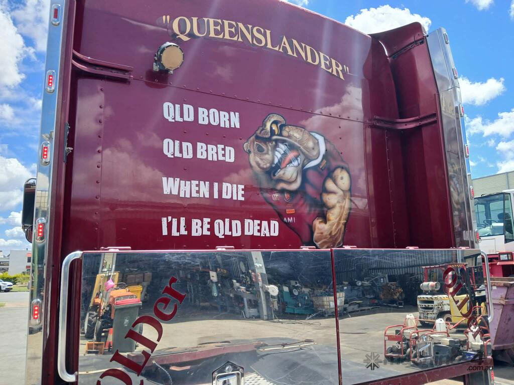 2011 Kenworth T909 Truck, Rego No: QLD909 (Sold Unregistered), VIN: 6F50000000EA454048, Odometer: 191,745km, QLD Maroons Paint Job, Colour: Maroon, Fuel: Diesel, Transmission: Manual, 6 Rod Suspension, Cummins E5 Engine, $370,000 on Cummins in Chassis Rebuild and Front Gear Train Replacement, Front and Rear Cross Locks, Road Relay System, Super Single Steer, Road Train Bullbar, Dolly Pull Cross Member, Auto Greaser, Custom Toolbox and Icepack Enclosure, 2 Seats with Bed/Sleeping Area, Small T.V, Microwave, Interior Good Condition, Front Bumber Small Rust Spots, Exhaust Cylinder Front Left Rust and Holes Bottom, Small Rust Rear Bumper, 3x Broken Brake Light Covers. Inspection Recommended, See Photos and Video For More Details. A Buyers Premium of 5.5% (GST Inc) Will Be Applied.