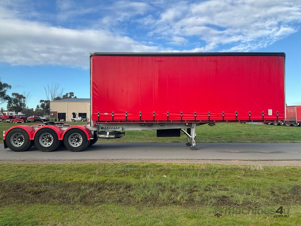 CP: 09/2011,Krueger,ST-3-38,Tri Axle Flat Top Curtainsider A Trailer,Hubometer not visible,Colour: Red,Rego. No: NP(83957S), Unregistered,VIN: 6FH9079DABM013558,Sold with No Plates