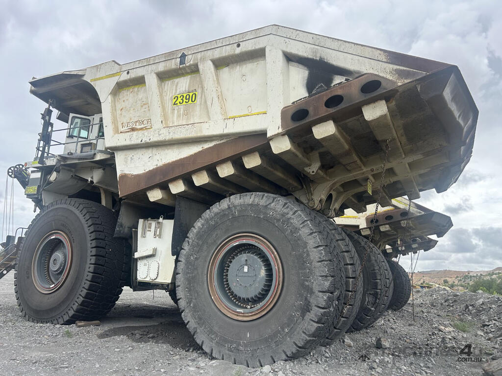 Options: MTU DD20V4000 Eng, Westech HiCube Body, Load Display, 59/80R63 Radial Tires, Standard Mine Spec, Hyd Access Ladder, Fire Suppression, Wheel Motors due. POS 3 Tire Damaged