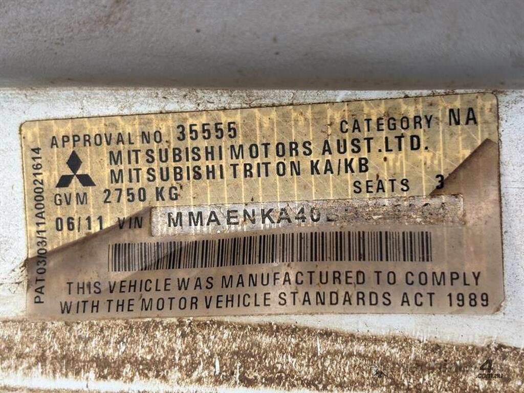 2011 MITSUBISHI TRITON GLX UTE, VIN: MMAENKA40BD015364, E/N: 4D56UCCS6757, 197,009 KM SHOWING, NO REGISTRATION, NO RWC. LOCATION: HALFERTY STREET, EMERALD, QLD 4720. INSPECTIONS & COLLECTIONS: MONDAY TO FRIDAY, 8AM TO 4PM. ENQUIRIES: JOHN MCDOUGALL ON OR JOHNEMERALDAUCTIONCENTRE