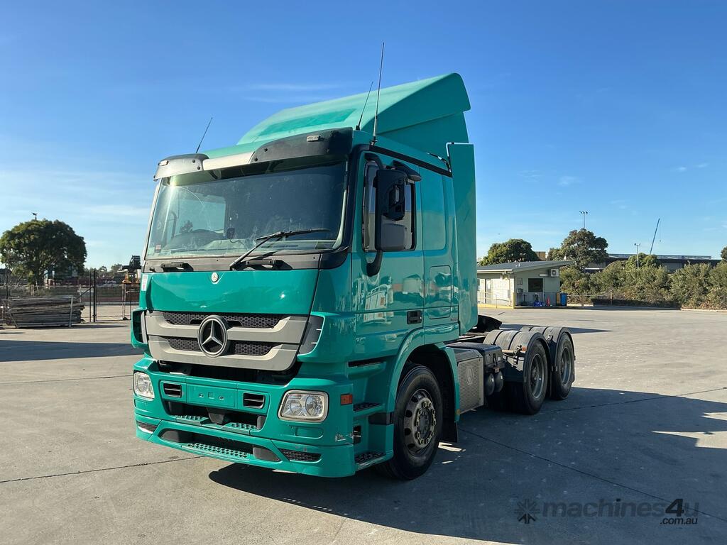 CP: 05/2011,Mercedes Benz,Actros 2648,Prime Mover,Automatic,Airbag ,Engine #: 6010,6 Cyl,Diesel,832303 (Kms. Showing on Odometer),Hourmeter not visible,Colour: Green,Rego. No: NP(XW36VB), Unregistered VIC,VIN: WDB9342412L549111,Key No: 303,Length: 6.9 m,GVM: 26000,GCM: 70000,Sold with No Plates,Key No: 303