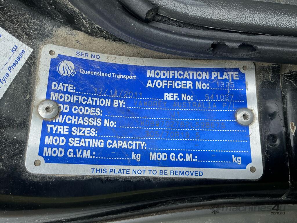 CP: 10/2011,Mercedes Benz,Atego 1624,Curtainsider,Automatic,Airbag,6 Cyl,Diesel,473897 (Kms. Showing on Odometer),11035 (Hrs. Showing on Hour meter),Colour: Black,Rego. No: NP(907MEQ), Unregistered QLD,VIN: WDB9702782L598675,Length: 8.9 m,GVM: 16000,GCM: 20400,Sold with No Plates