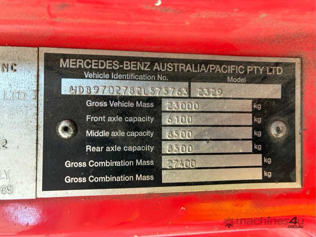 CP: 08/2011,Mercedes Benz,Atego 2329,Curtainsider,Automatic,Airbag,6 Cyl,Diesel,559710 (Kms. Showing on Odometer),12713 (Hrs. Showing on Hour meter),Colour: Red,Rego. No: 127RVS QLD,VIN: WDB9702782L575763,Key No: 347,GVM: 23000,GCM: 27400,Sold with No Plates,Key No: 347