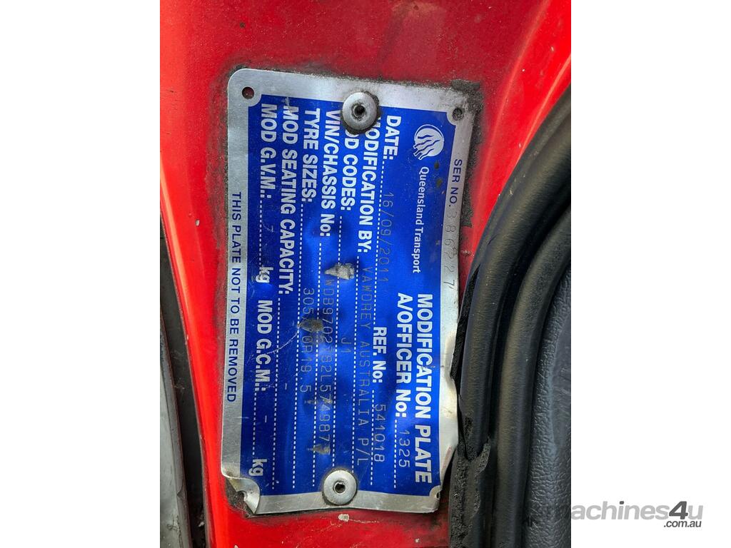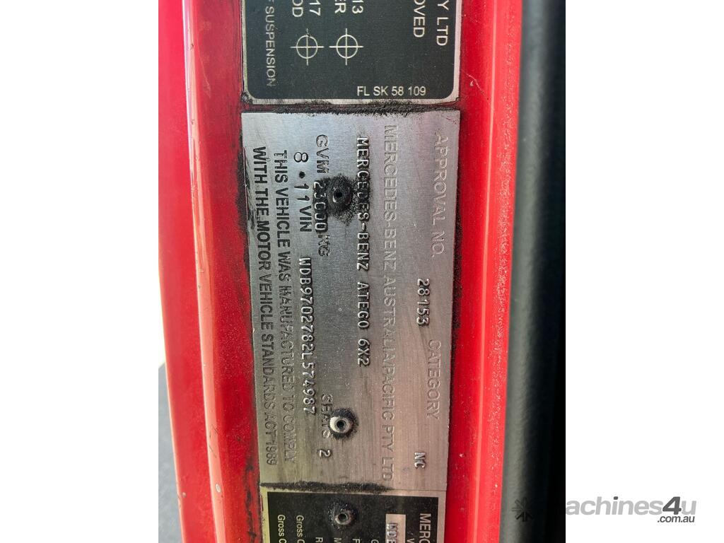 CP: 08/2011,Mercedes Benz,Atego 2329,Curtainsider,Automatic,Airbag,6 Cyl,Diesel,545736 (Kms. Showing on Odometer),12709 (Hrs. Showing on Hour meter),Colour: Red,Unregistered,VIN: WDB9702782L574987,Length: 11.3 m,GVM: 23000,GCM: 27400,Sold with No Plates