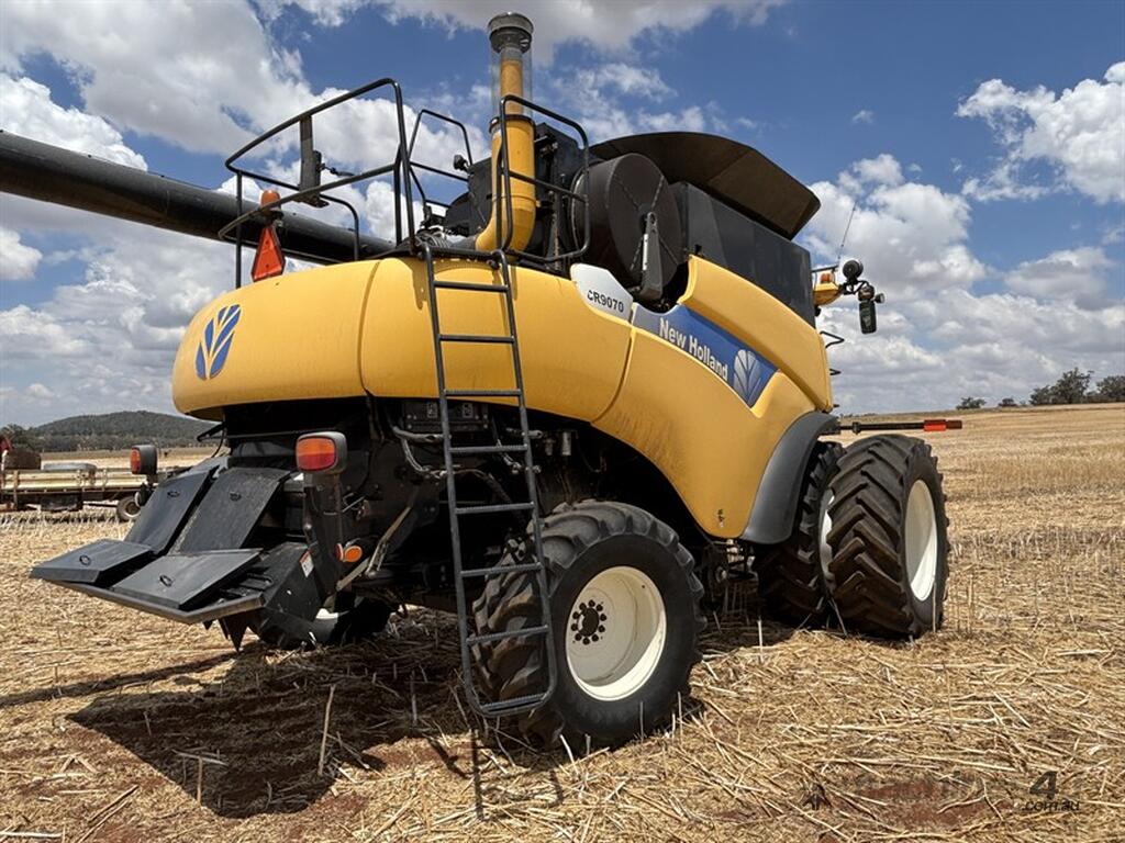 2011 NEW HOLLAND CR9070, S/N: YBG114635, BASE UNIT ONLY, 4672 rotor hours, 6223 engine hours, option of duals or single front tyres (currently on duals), Pro 700 display, NO nav controller or reciever, recently had new oil cooler fitted, new bubble up auger gearbox, main unload auger gearbox rebuilt, NOTE: new chopper jack shaft bracket will be supplied, tow bar bracket included and ladder extension (if staying on duals), just completed harvest, presents well, located Dubbo