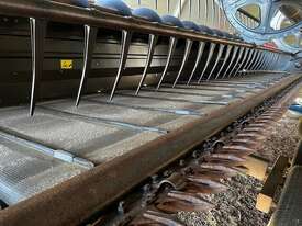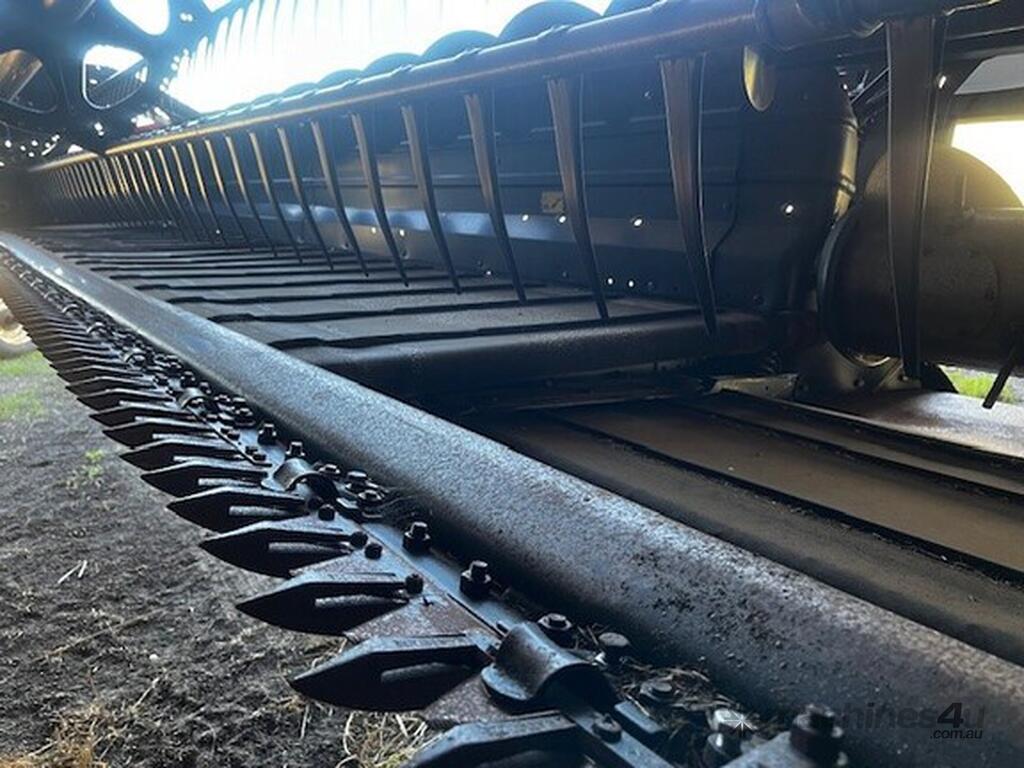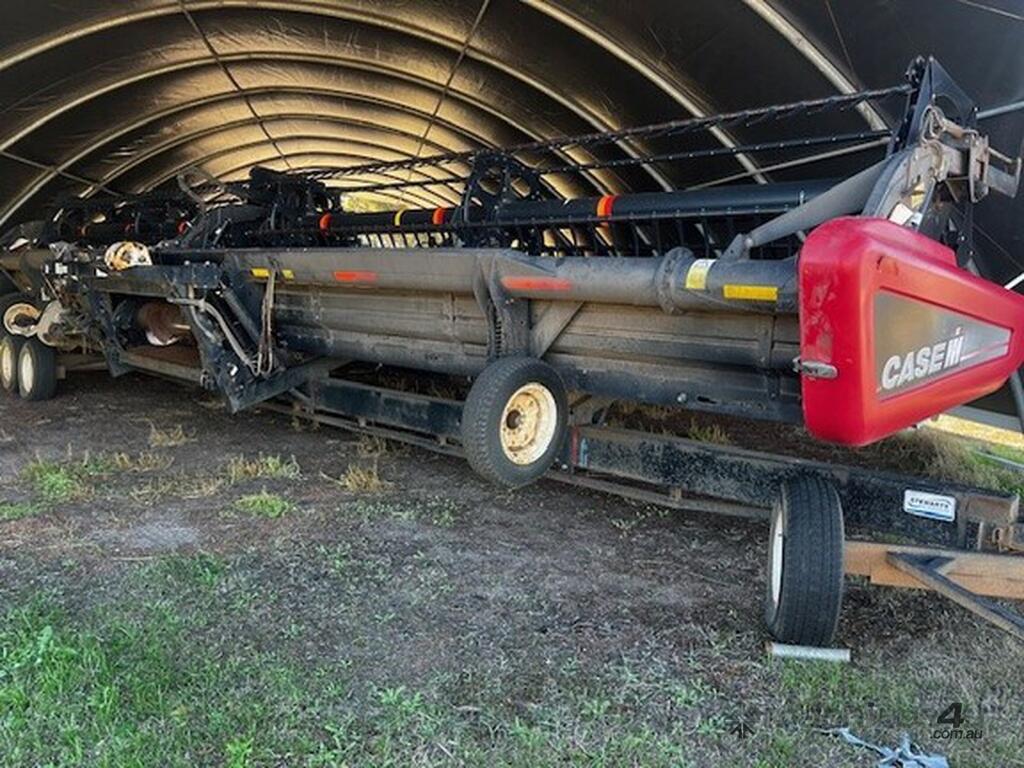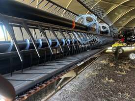 NH CR9070 with chopper iHSD & Case/MacDon 2152 front on trailer serviced for harvest.