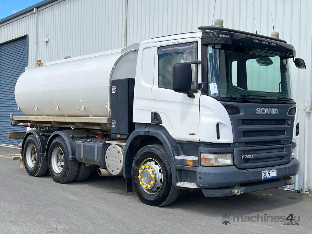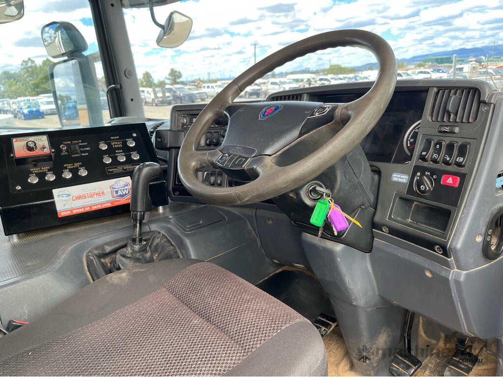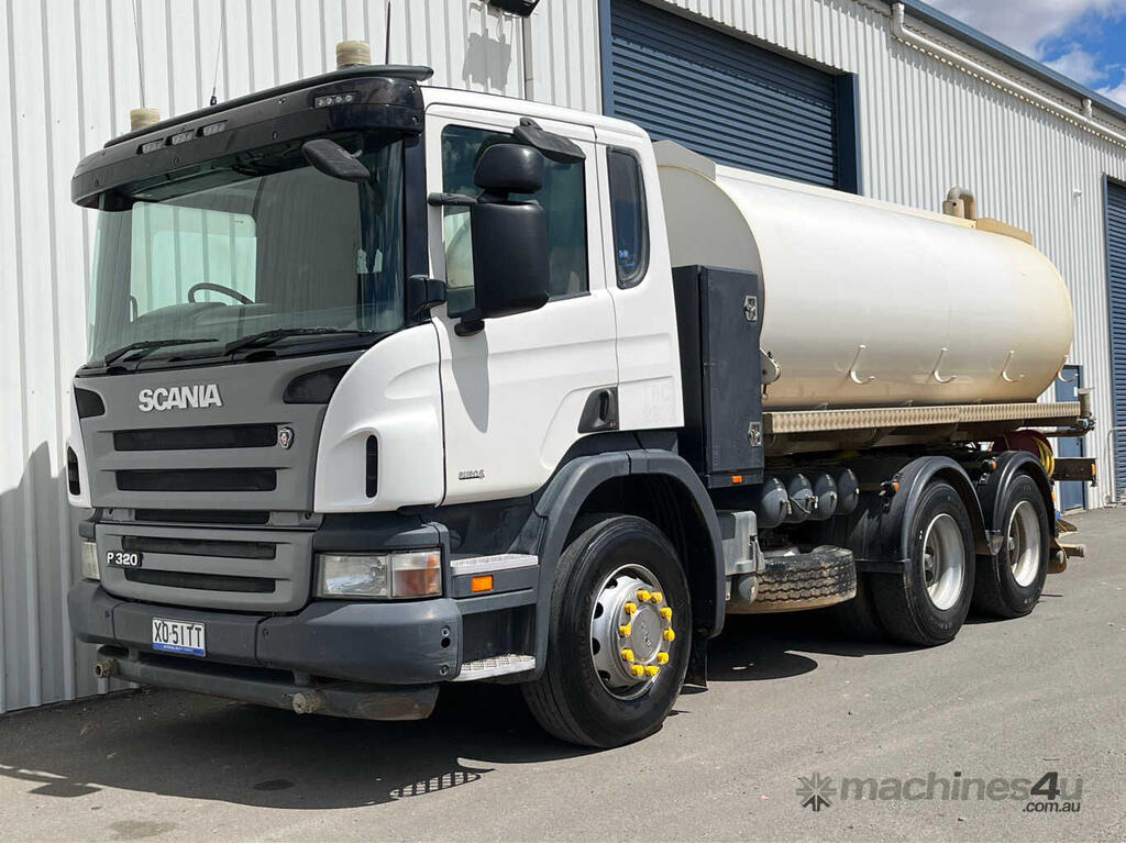 CP: 09/2011,Scania,P320,Water Cart,Manual,Leaf Spring Suspension ,6 Cyl,Diesel Turbo,6 Gears,233694 (Kms. Showing on Odometer),4577 (Hrs. Showing on Hour meter),Colour: White,Rego. No: XO51TT NSW,Rego expiry: 01/05/2026,VIN: VLUP6X400B9161068,Length: 7.5 m,GVM: 26100,GCM: 45000,Sold with No Plates