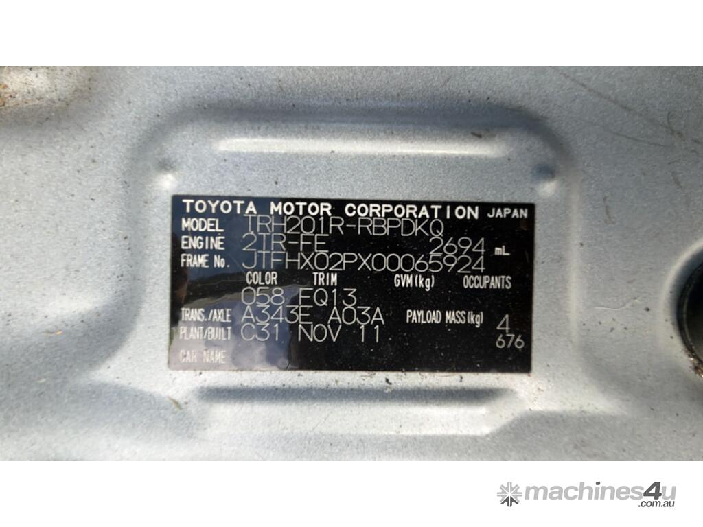 2011 Toyota TRH201R HiAce LWB 2 Van 4sp Auto 2.7L 2700cc 4cyl Petrol 2005