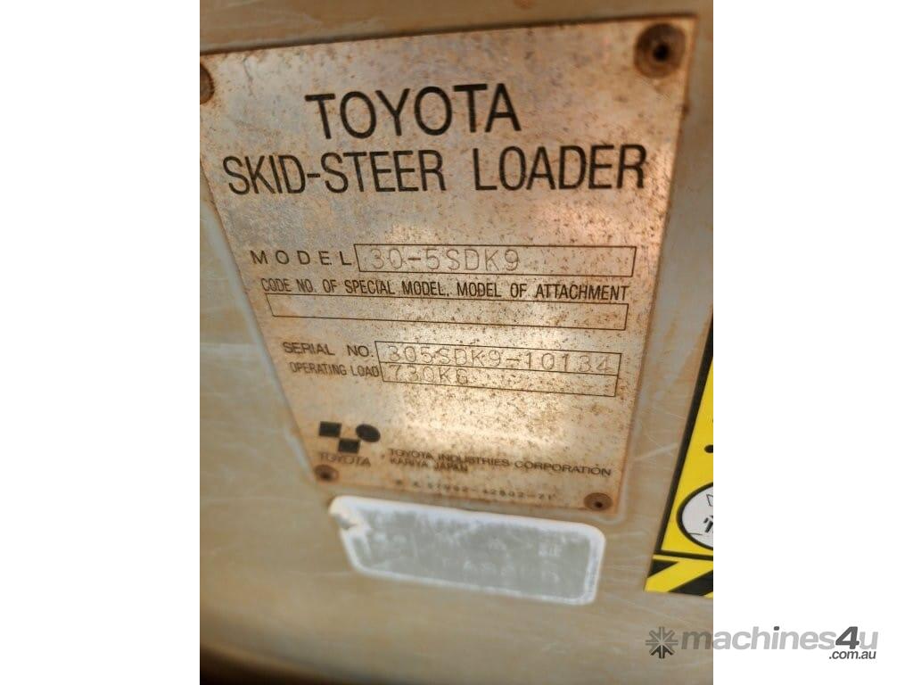 CP: CIRCA 2011,Toyota,Huski 30-5SDK9,Wheeled Skid Steer,Engine #: 2Z0124831,Diesel,Odometer not visible,753 (Hrs. Showing on Hour meter),Colour: White,Rego. No: NP(1DQT558), Unregistered WA,Serial No: 305SDK910134,Sold with No Plates