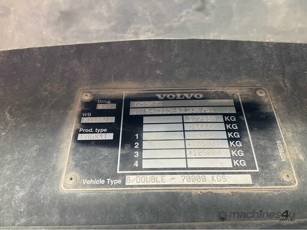 CP: 06/2011,Volvo,FH MK2,Prime Mover Sleeper Cab,Automatic,Airbags ,Engine #: D13269966,Euro 5,6 Cyl,Diesel Turbo,765439 (Kms. Showing on Odometer),17217 (Hrs. Showing on Hour meter),Colour: White,Rego. No: NP(1BE1RD), Unregistered VIC,VIN: YV5AG30D4BD133675,Key No: 59E,Length: 6.9 m,GVM: 27700,GCM: 70000,Sold with No Plates,Key No: 59E