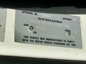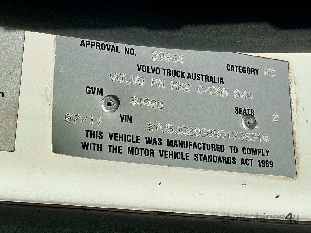 CP: 07/2011,Volvo,FM MK2,Hook Bin Truck,Automatic,Airbag ,Engine #: D13410264C1A,6 Cyl,Diesel,Turbo,474510 (Kms. Showing on Odometer),9514 (Hrs. Showing on Hour meter),Colour: White,Rego. No: XP19NS NSW,Rego expiry: 18/03/2027,VIN: YV5JG20G8BD133831,Key No: 501S,Length: 9.5 m,GVM: 34000,Sold with No Plates,Key No: 501S