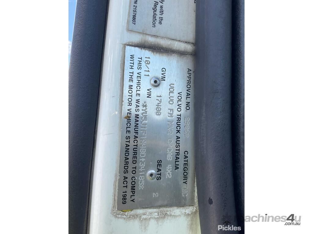 CP: 10/2011,Volvo,Fm,Prime Mover,Automatic,Airbag,928100 (Kms. Showing on Odometer),Hourmeter not visible,Colour: White,Rego. No: XP23LE NSW,VIN: YV5J1F1A4BD134185,GVM: 17400,GCM: 36000,Sold with No Plates,WOVR Status: Repairable Write-Off,Incident Type: Impact