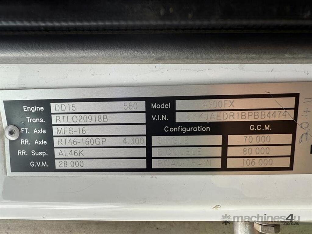 2011 WESTERN STAR 4900FX PRIME MOVER, VIN: 5KKJAEDR1BPBB4474, E/N: 472903R1001721, 1,741,157KM SHOWING, 30,716 HOURS SHOWING, NO REGISTRATION, NO COI. LOCATION: GRACEMERE, QLD 4702. INSPECTIONS & COLLECTIONS: BY APPOINTMENT ONLY. ENQUIRIES: CAMERON BENSLEY ON OR CAMERONEMERALDAUCTIONCENTRE
