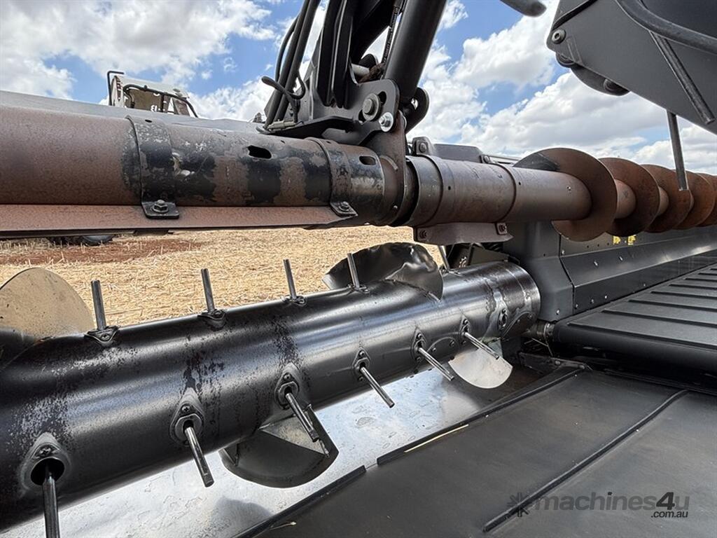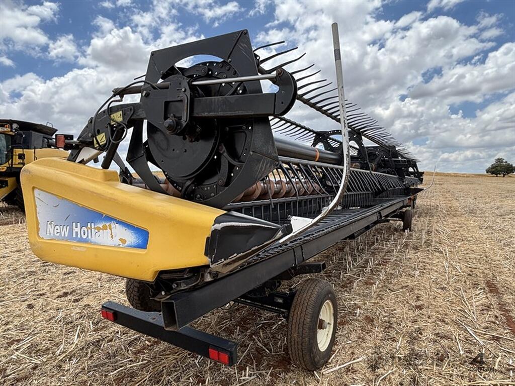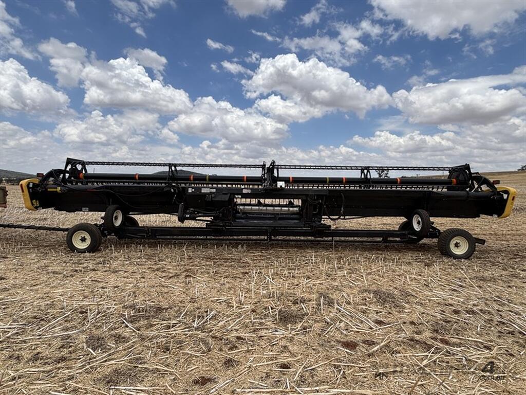 2012 40' MACDON D65, S/N: YCZN32612, branded New Holland 83C, new draper and centre mats this season, top cross auger, Typhoon feed drum, adaptor to suit CNH machine, comes with 4 wheel steer Horst trailer, located Dubbo