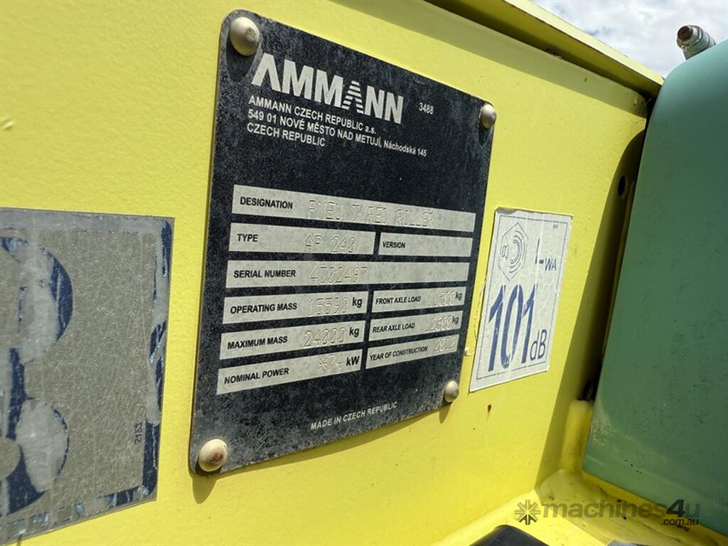 2012 AMMANN AP20 PNEUMATIC TYRE ROLLER. Drives and works, aircon working, 1,55 engine hours. Nominal power 74kw, Operating mass 15590kg. Registered expired in Aug 2024. Located at Moree NSW, available at MRE Auctions online sale.