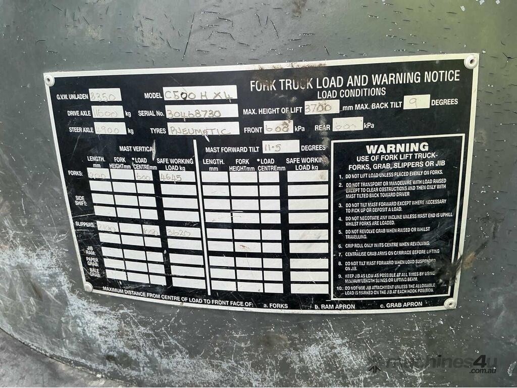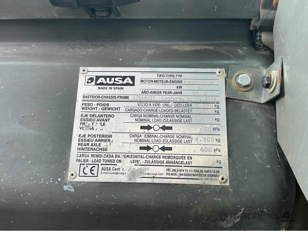 CP: CIRCA 2012,Ausa,C500H,Forklift,Diesel,Odometer not visible,3566 (Hrs. Showing on Hour meter),Colour: Orange,Unregistered,Serial No: 30468730,Sold with No Plates,WOVR Status: WOVR N/A