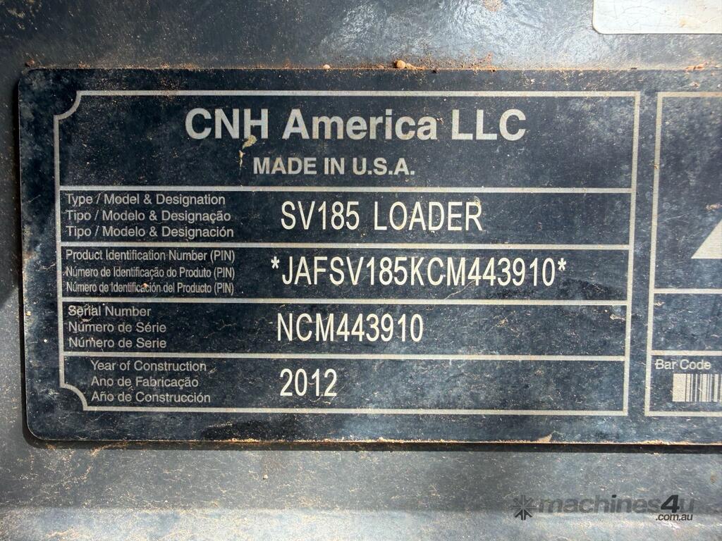 CP: CIRCA 2012,Case,SV185,Wheeled Skid Steer,4 Cyl,Odometer not visible,Hourmeter not visible,Colour: Orange,Rego. No: NP(MI4713), Unregistered WA,VIN: JAFSV185KCM443910,Serial No: NCM44391,Sold with No Plates,WOVR Status: WOVR N/A,Incident Type: Impact
