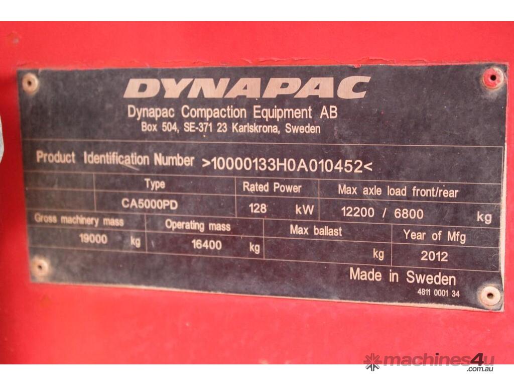 2012 Dynapac CA5000PD :      $59,000 AUD($64,900 Inc. GST)