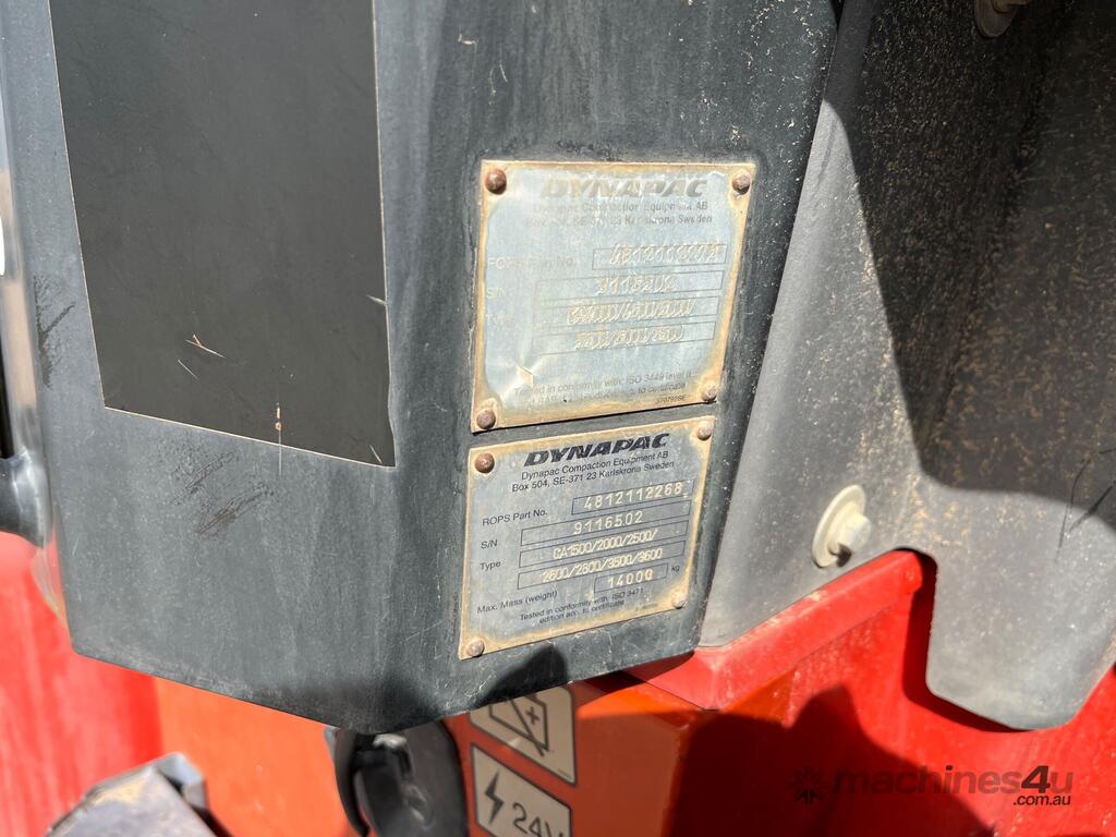 CP: CIRCA 2012,Dynapac,CA6000D,Articulated Smooth Drum Roller,6 Cyl,Diesel,Odometer not visible,4089 (Hrs. Showing on Hour meter),Colour: Yellow,Rego. No: NP(05306C), Unregistered QLD,Serial No: 10000135K0A010234,ROPS No: 9116502,FOPS No: 9116502,Sold with No Plates