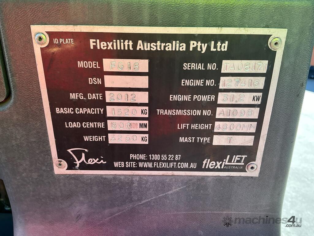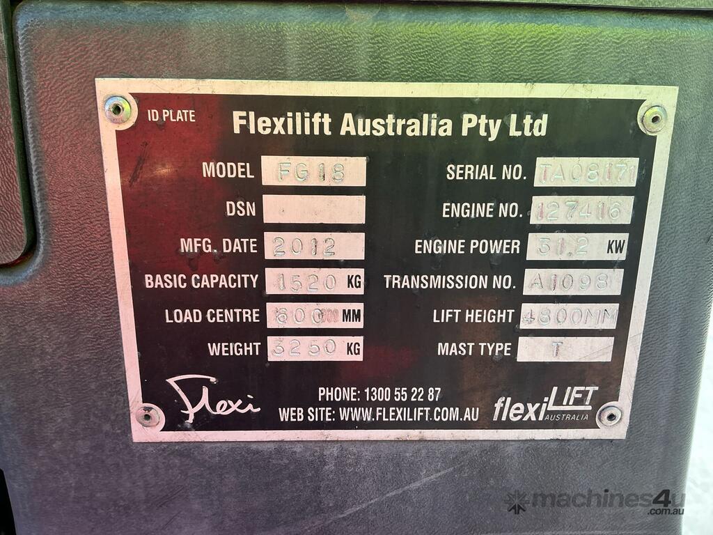 CP: CIRCA 2012,Flexi Lift,FG18,Counter Balance Forklift,Petrol & LPG (Dual),Odometer not visible,4930 (Hrs. Showing on Hour meter),Colour: Red,Unregistered,Serial No: TA08171,Sold with No Plates