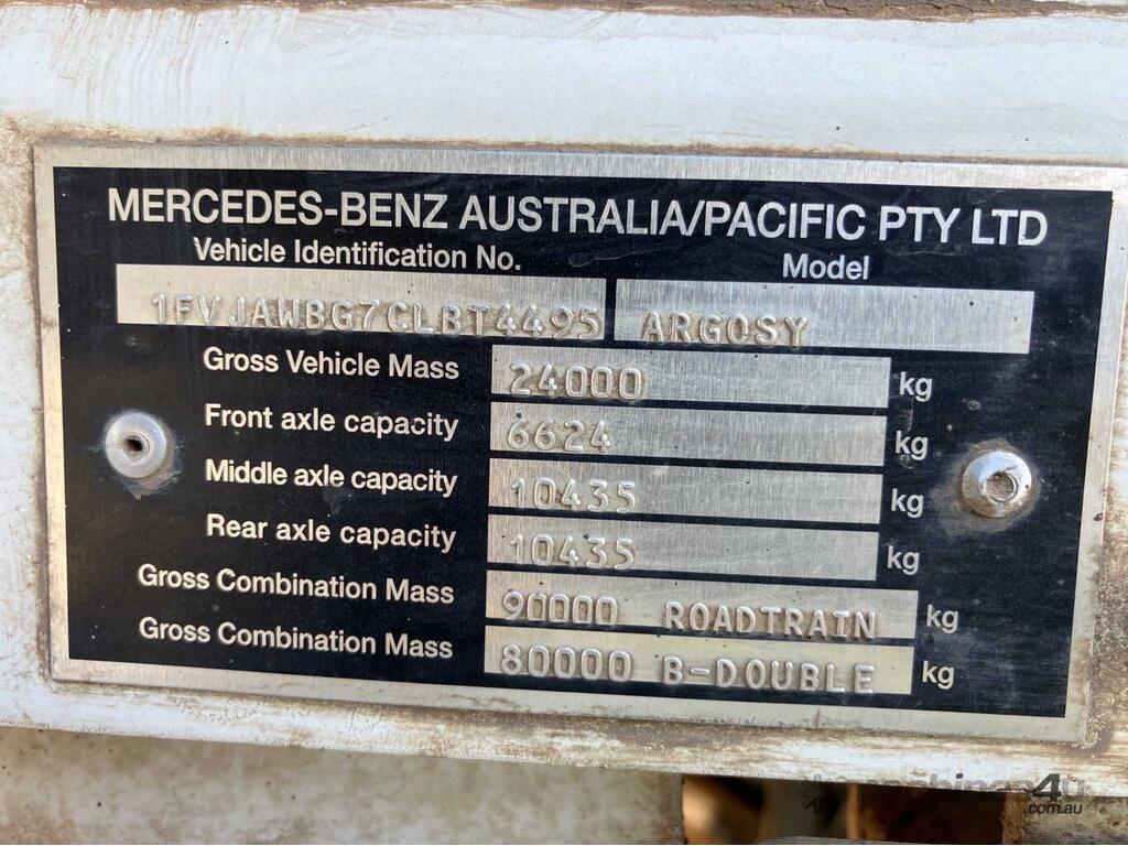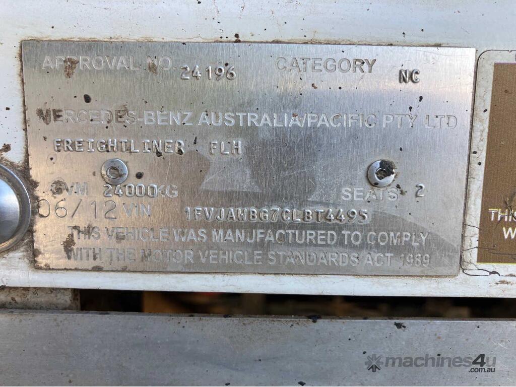 CP: 06/2012,Freightliner,Argosy,Prime Mover,Manual,Airbag Suspension ,6 x 4,6 Cyl,Diesel,1470669 (Kms. Showing on Odometer),Hourmeter not visible,Colour: White,Rego. No: NP(XN31NV), Unregistered NAT,VIN: 1FVJAWBG7CLBT4495,Length: 6.8 m,GVM: 24000,GCM: 90000,Sold with No Plates,WOVR Status: Repairable Write-Off,Incident Type: Impact