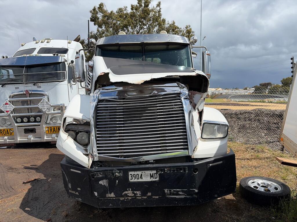 CP: 11/2012,Freightliner,Coronado 114,6x4 Prime Mover,Manual,Airbag,6 Cyl,Diesel Turbo,18 Gears,Odometer not visible,Hourmeter not visible,Colour: White,Rego. No: NP(3904MD), Unregistered WA,VIN: 1FVHGVDR4DLBZ6217,Key No: NOKEY,GVM: 24000,GCM: 90000,Sold with No Plates,WOVR Status: WOVR N/A,Incident Type: Impact,Key No: NOKEY