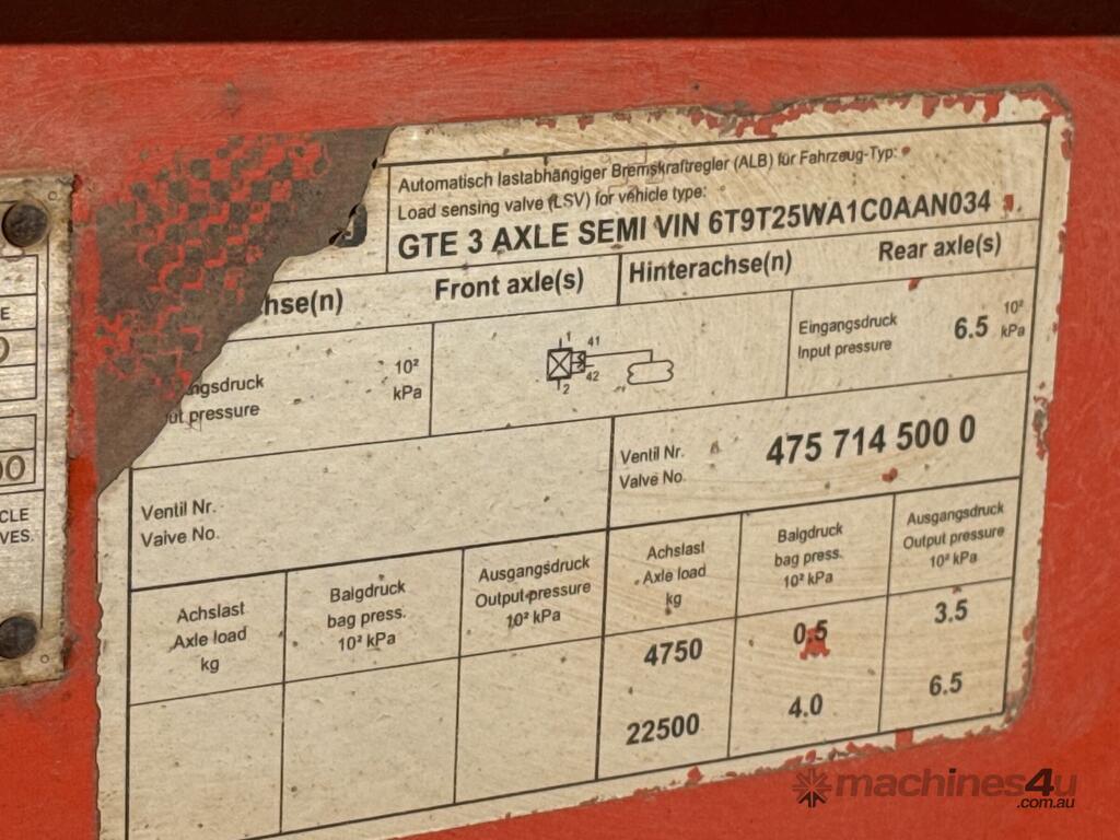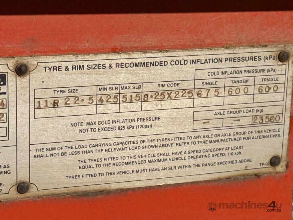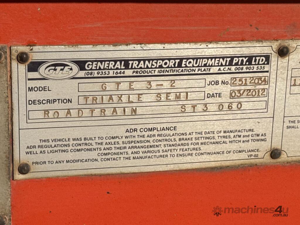 CP: 03/2012,Built: 03/2012,General Transport Equipment,3-2,Tri Axle Side Tipper Combination,659738 (Kms. Showing on Hubometer),Colour: Orange,Rego. No: YV94LU NAT,VIN: 6T9T25WA1C0AAN030,Sold with No Plates