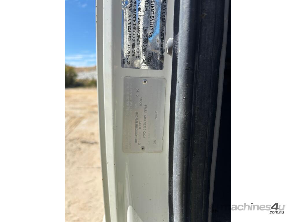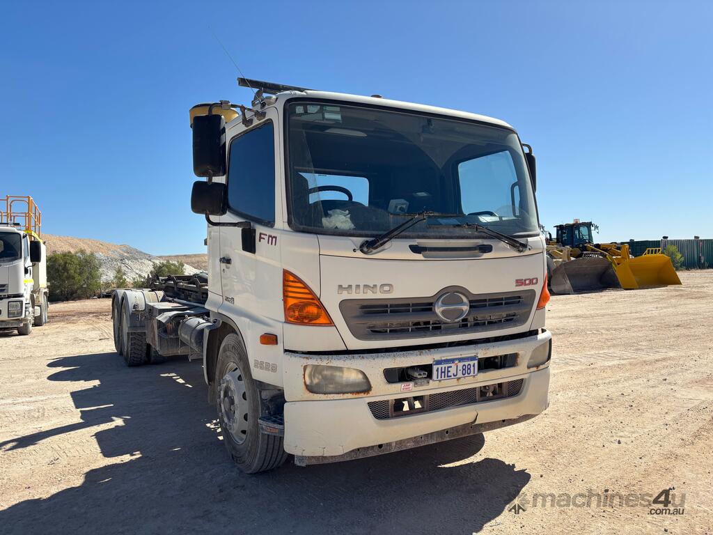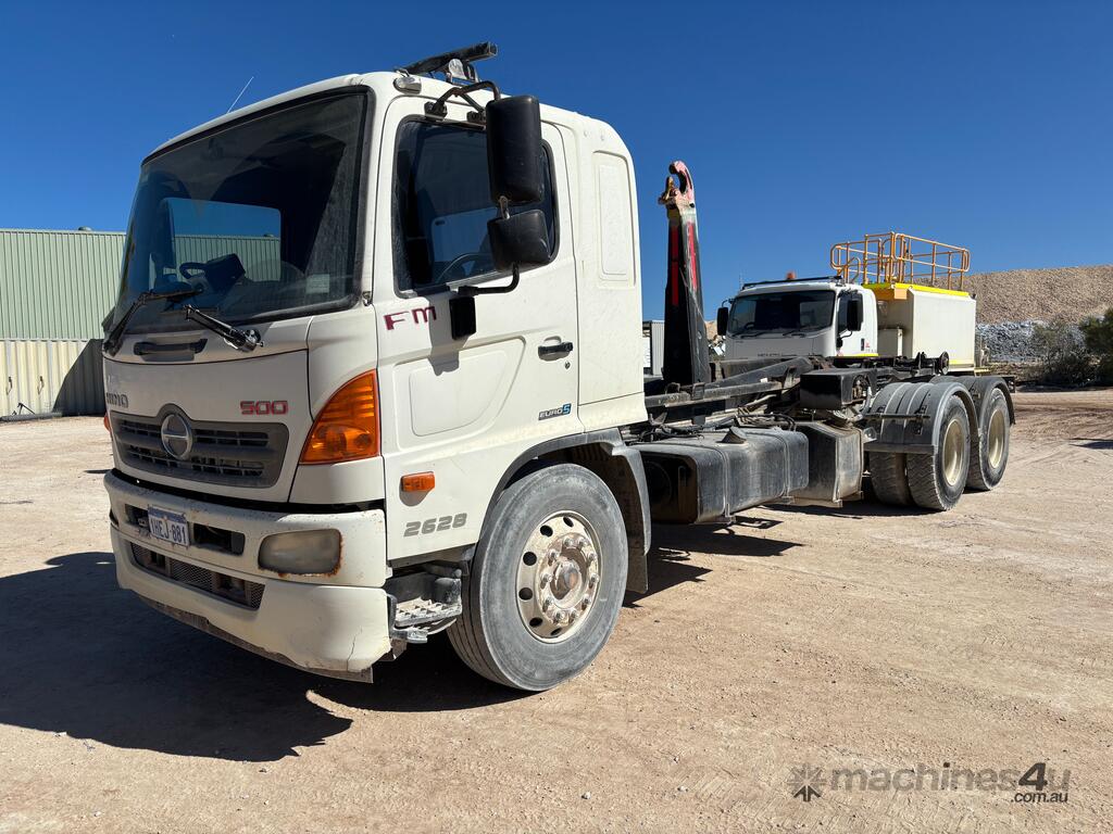 CP: 06/2012,Hino,FM500 2628,Hook Bin Truck,Automatic,Spring,6 Cyl,Diesel Turbo,82865 (Kms. Showing on Odometer),2893 (Hrs. Showing on Hour meter),Colour: White,Rego. No: 1HEJ881 WA,VIN: JHDFM8JRKXXX12346,GVM: 26000,GCM: 33000,Sold with No Plates