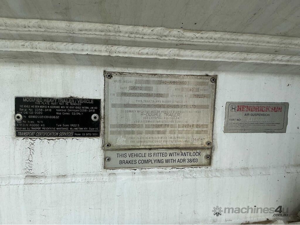 CP: 06/2012,Built: 06/2012,Holmwood Highgate,Tri Axle Tanker Trailer,24751 (Kms. Showing on Hubometer),Colour: White,Rego. No: NP(98601S), Unregistered VIC,VIN: 6B9B20351CBAB3632,Sold with No Plates