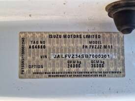 CP: 10/2012,Isuzu,FVZ 1400,Water Cart,Automatic,Spring Suspension ,Sitec 295,6 Cyl,Diesel,Turbo,Odometer not visible,Hourmeter not visible,Colour: White,Rego. No: NP(SB38FQ), Unregistered SA,VIN: JALFVZ34SB7000201,GVM: 24000,GCM: 36000,Sold with No Plates