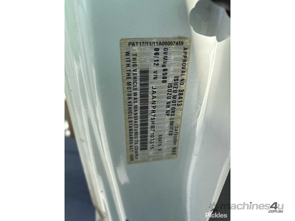 CP: 06/2012,Isuzu,NPR 300 MWB,Pantech,Manual,4 Cyl,Diesel,Odometer not visible,Hourmeter not visible,Colour: White,Rego. No: NP(ZEW606), Unregistered VIC,VIN: JAANPR75HB7103315,Length: 5 m,GVM: 6500,Sold with No Plates,WOVR Status: WOVR N/A,Incident Type: Impact