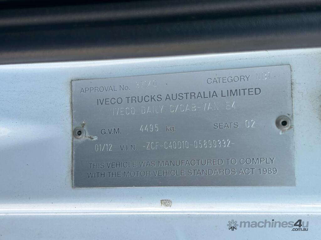 CP: 01/2012,Iveco,Daily,Pantech,Automatic,Airbag,4 Cyl,218023 (Kms. Showing on Odometer),Hourmeter not visible,Rego. No: NP(495HT8), Unregistered QLD,VIN: ZCFC40D,Key No: 328,GVM: 4495,Sold with No Plates,WOVR Status: WOVR N/A,Incident Type: Not Applicable,Key No: 328