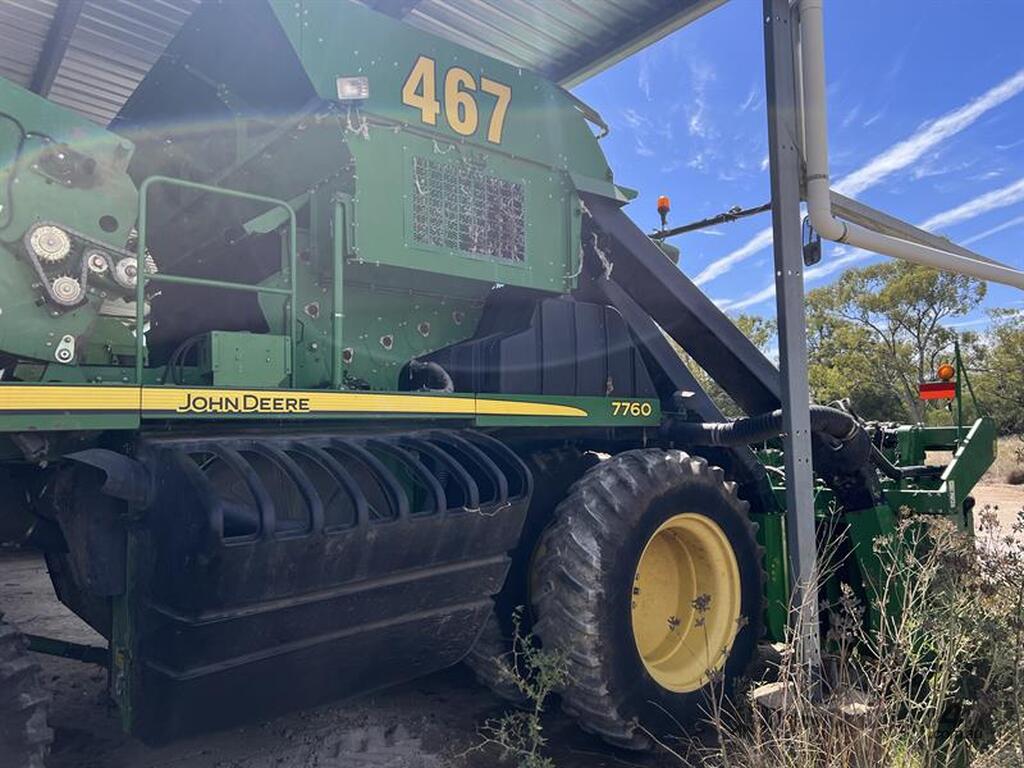 2012 JOHN DEERE 7760 COTTON PICKER. Serial No 1N07760XLB0035467. Engine 5,105hrs, Fan 3,374hrs. Picker has had a pre-season with John Deere - had over $60,000 spent during the off season. Will be paddock ready. Has front duals, good tyres. Located at Brezza NSW. Available at Moree Real Estate online auction. March 2023