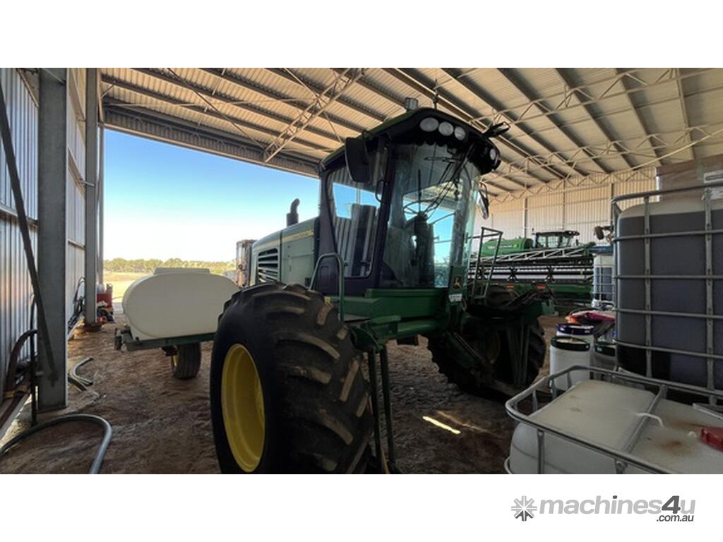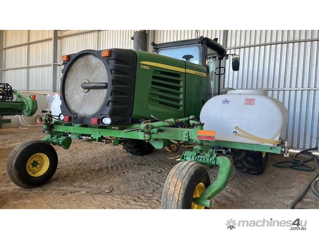 2012 John Deere D450 Swather with 640D platform on trailer. 2445 Eng hrs. John Deere Autotrac Ready. Spray tank set up.