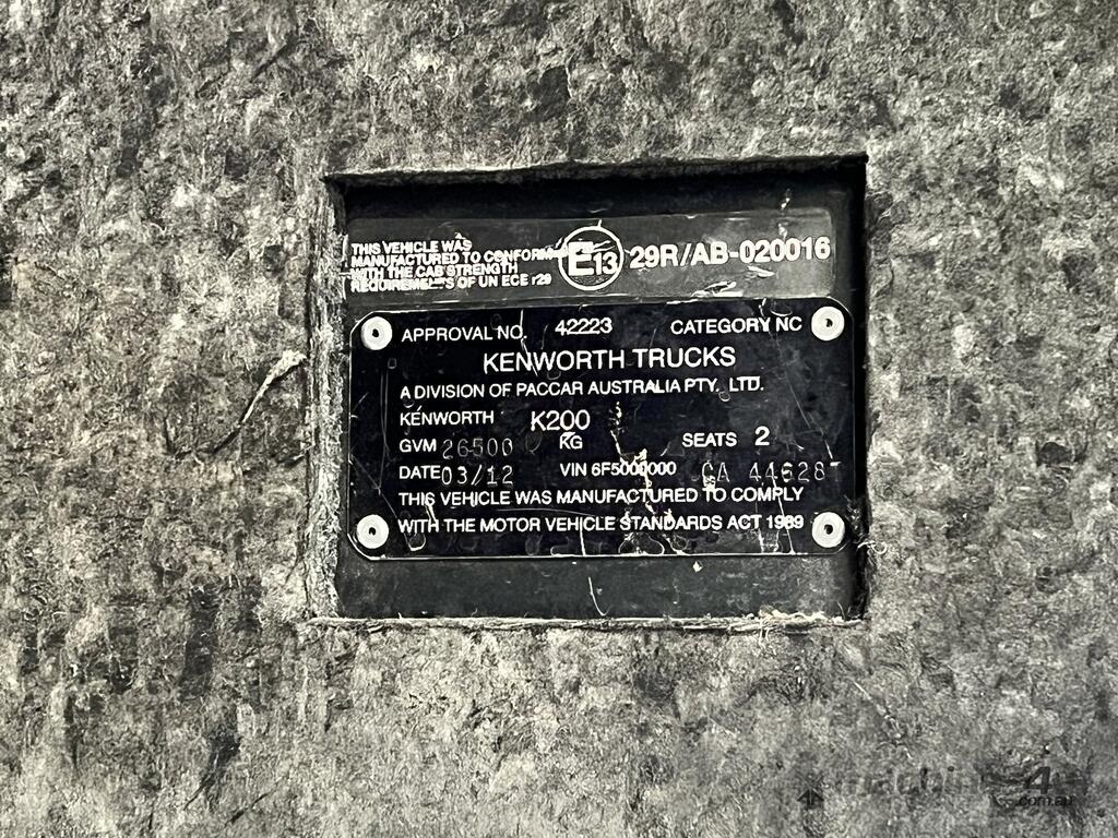 CP: 03/2012,Kenworth,K200 Series,6x4 Sleeper Cab Prime Mover,Airbag Suspension,6 Cyl,Diesel,Odometer not visible,Hourmeter not visible,Colour: Blue,Rego. No: NP(XO89XF), Unregistered,VIN: 6F5000000CA446287,GVM: 26500,Sold with No Plates,WOVR Status: Statutory Write-Off,Incident Type: Impact