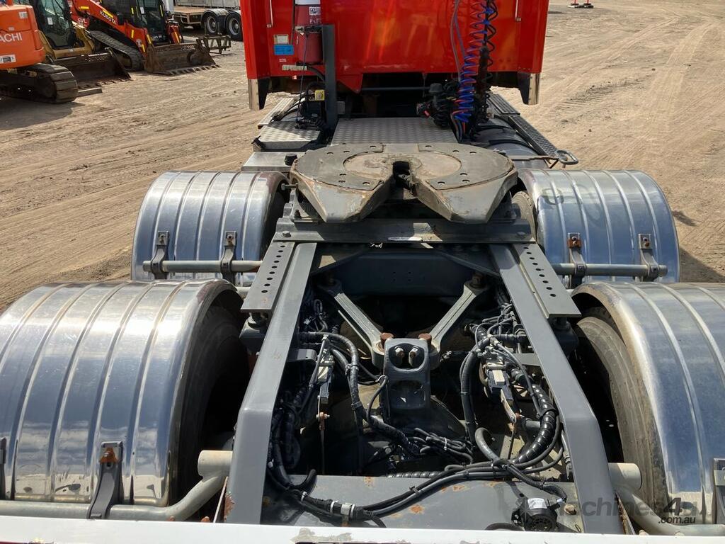 CP: 07/2012,Built: 07/2012,Kenworth,T609,6x4 Sleeper Cab Prime Mover,Manual,Airbag,Cummins,6 Cyl,Diesel,Turbo,18 Gears,776373 (Kms. Showing on Odometer),Colour: Red,Rego. No: NP(CL22YA), Unregistered NSW,VIN: 6F5000000CA447523,GVM: 26000,GCM: 97000,Sold with No Plates
