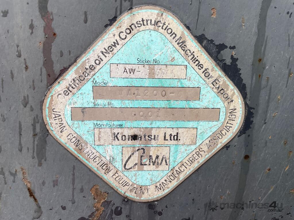 CP: CIRCA 2012,Built: 01/2012,Komatsu,WA1200,Articulated Wheeled Loader,60.2 Ltr,16 Cyl,Diesel,Odometer not visible,63928 (Hrs. Showing on Hour meter),Colour: Yellow,Unregistered,Serial No: 60018,Sold with No Plates