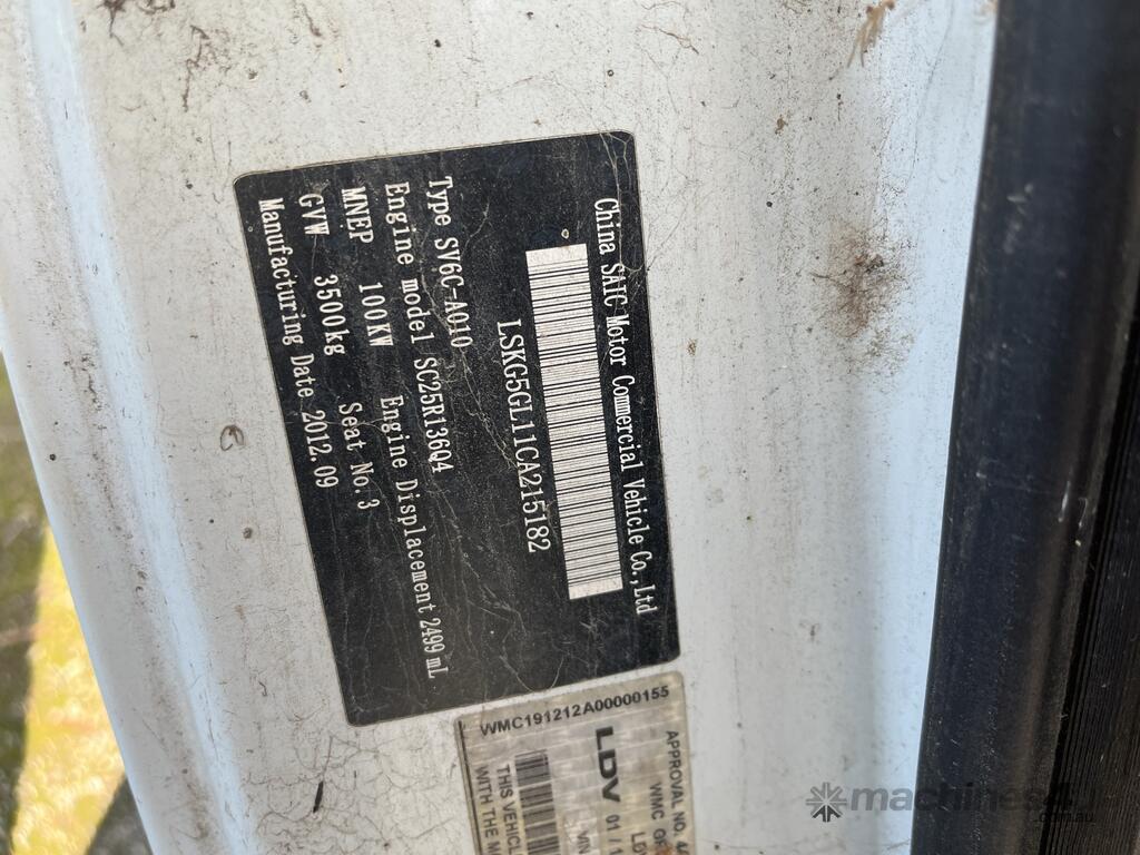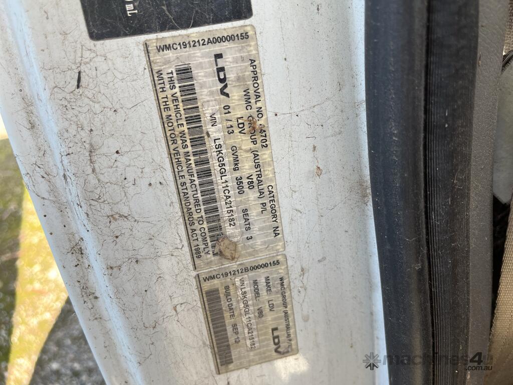 2012 LDV V80 LWB MANUAL FWD DIESEL VAN 2499cc 100kw 5sp 4cyl 5dr 3seat