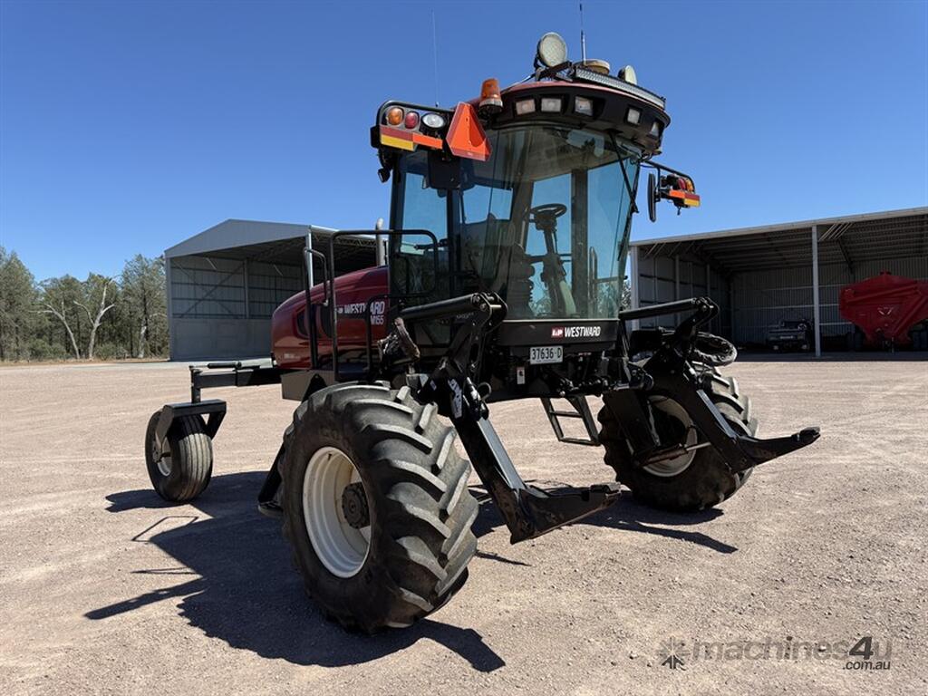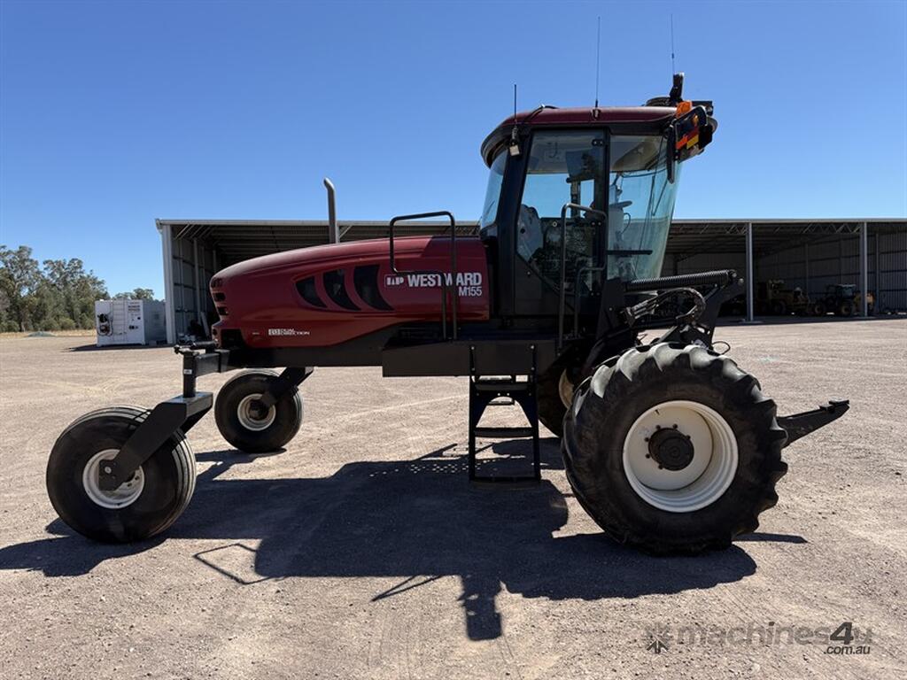 2012 MacDon Westwood M155 Windrower, Serial number 219602. Cummins-powered windrower showing 1,934.5 engine hours and 1,508.9 header hours. Fitted with Topcon auto steer and Topcon X30 screen on unlocked RTK system. Vendor was using own base station which can be purchased separately if needed. Features air-conditioned cab, HID lights, LED light, flashing beacons and had new batteries fitted recently. All tyres are in good condition. This is a very tidy, well-presented one owner machine that has been well lo