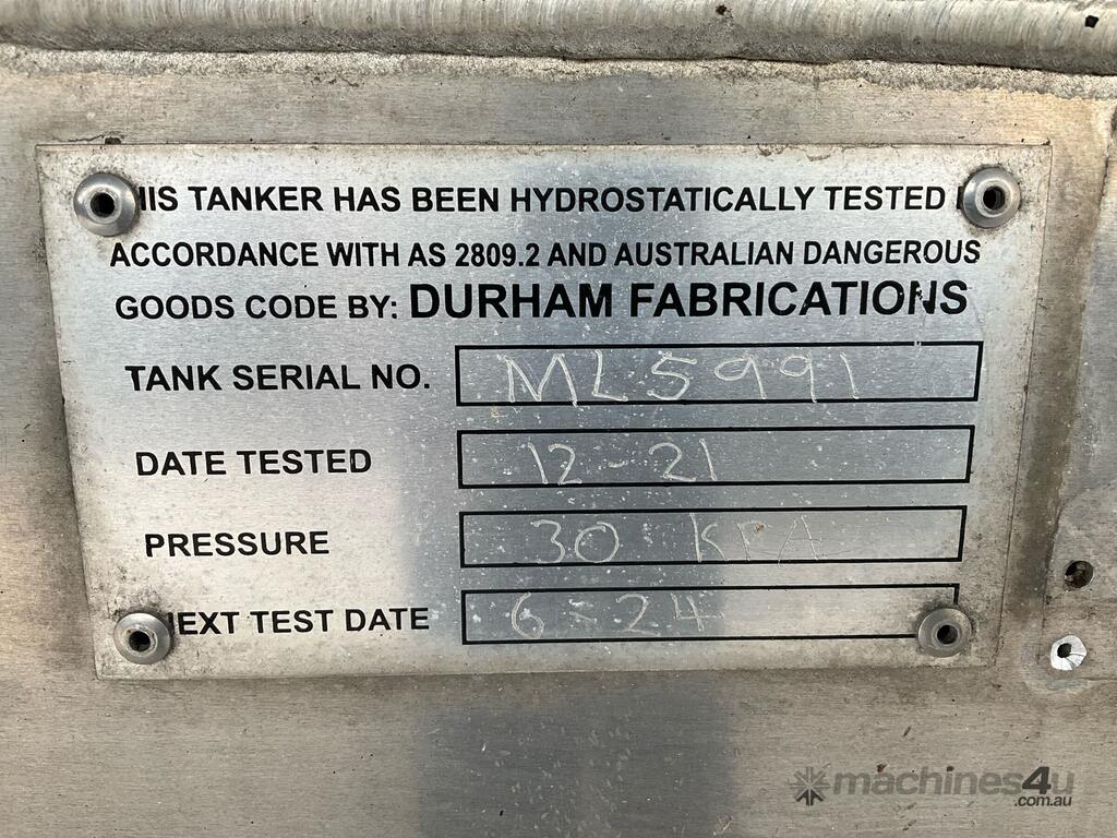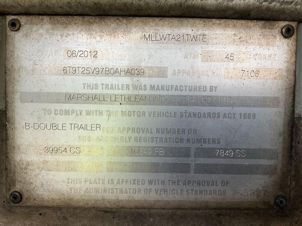 CP: 06/2012,Built: 06/2012,Marshall Lethlean,MLLWTA21TWTE,Tri Axle Fuel Tanker Combination,Hubometer not visible,Colour: Alloy,Unregistered,VIN: 6T9T25V97B0AHA038,Serial No: ML5991,Sold with No Plates
