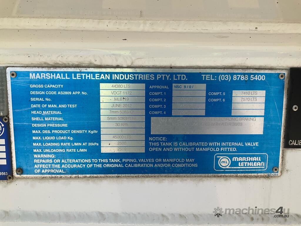 CP: 06/2012,Marshall Lethlean,MLLWTA21TWTE,Tri Axle Tanker Trailer,Hubometer not visible,Colour: White,Unregistered,VIN: 6T9T25V97C0AHA035,Sold with No Plates