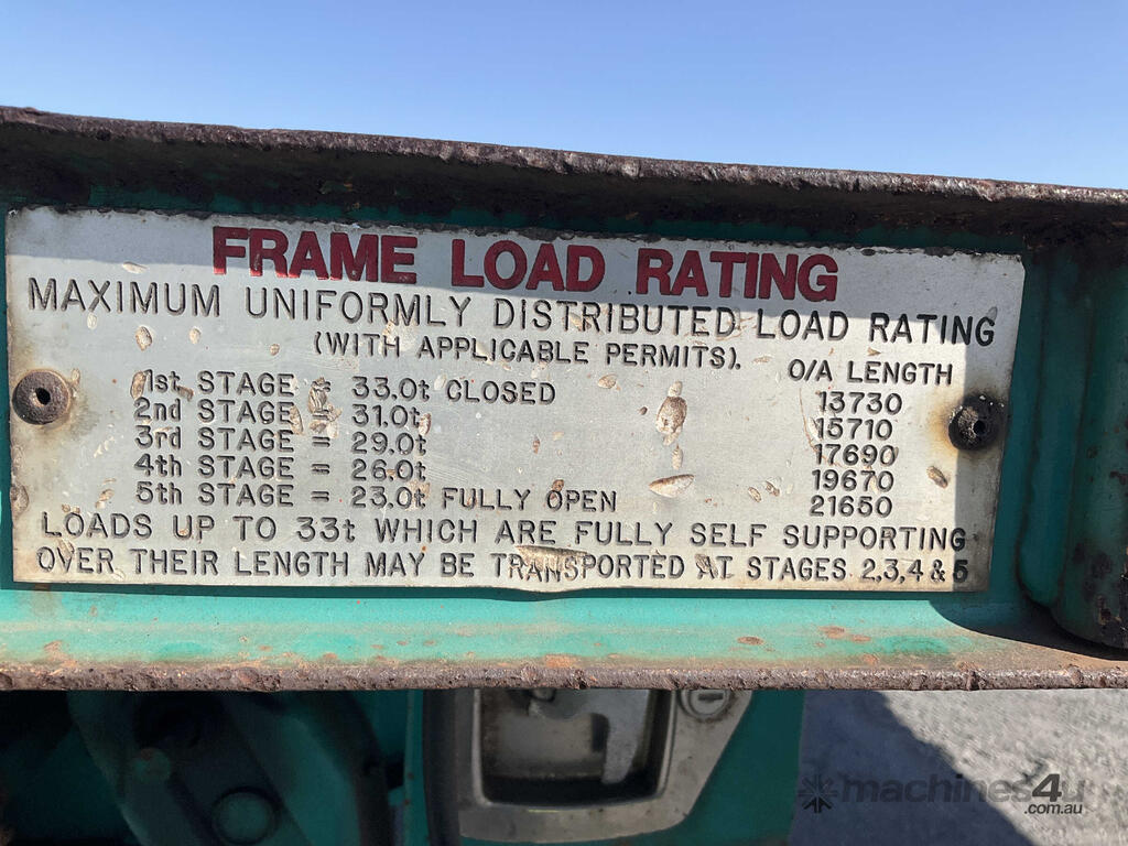 CP: 10/2012,Maxitrans,ST3,Tri Axle Extendable Flat Top Trailer,447057 (Kms. Showing on Hubometer),Colour: Green,Rego. No: NP(Y32442), Unregistered NSW,VIN: 6F80000000B084129,Sold with No Plates