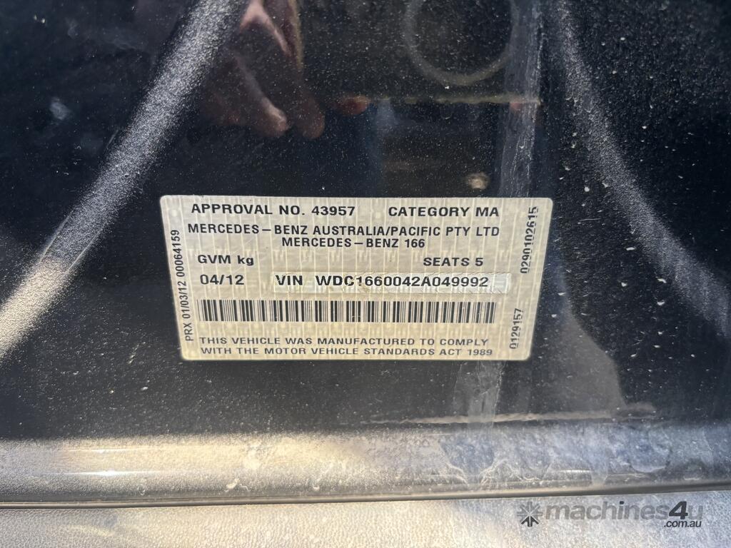 2012 MERCEDES-BENZ M-CLASS ML250 2.1D BLUETEC 4-MATIC W166 AUTO AWD DIESEL SUV 2143cc 150kw 7sp 4cyl 5dr 5seat.